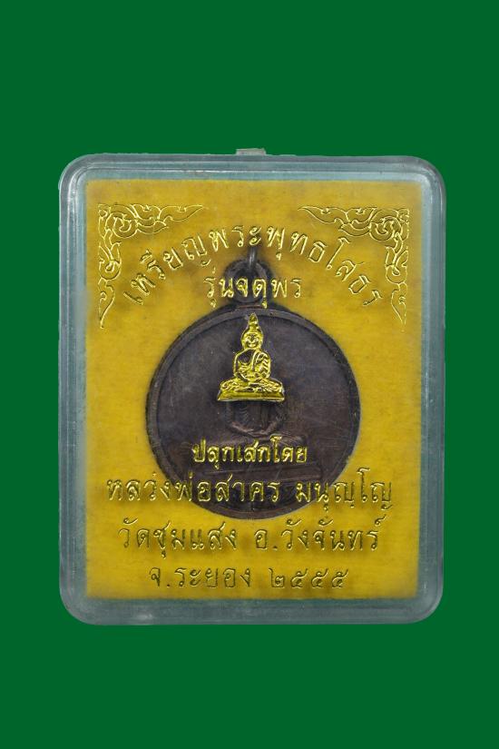 วัดใจ เหรียญพระพุทธโสธร รุ่นจตุพร หลวงพ่อสาคร วัดหนองกรับ มีโค๊ต สภาพสวยเดิม พร้อมกล่องเดิม หมายเลข 340 |