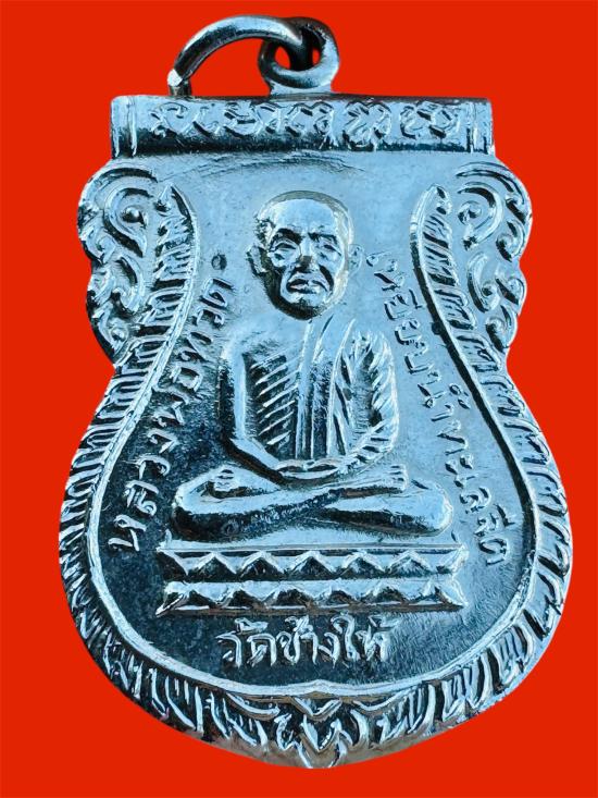 ชื่อพระเครื่อง เหรียญเสมาหลวงพ่อทวด วัดช้างให้ รุ่นใต้ร่มเย็น ปี2526 เนื้อทองแดงชุบนิเกิ้ล บล็อกวัด วงเดือนหน้า หลังยันต์จุด