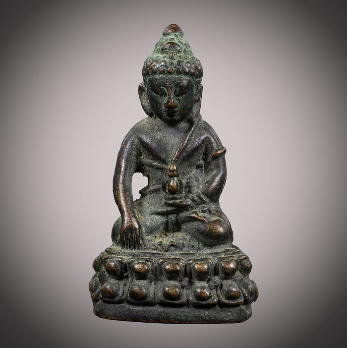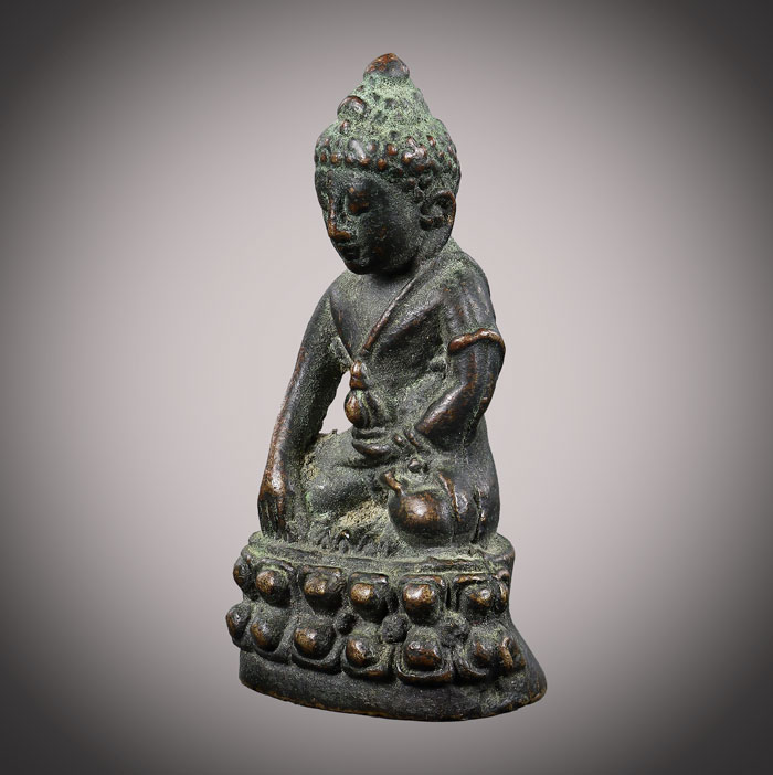 (วัดใจ)พระกริ่งหน้าจีน (ไม่ทราบที่สร้าง) เนื้อโลหะผสม พร้อมตอกโค๊ตและหมายเลข สภาพเก่าพอมีอายุ(กริ่งดังปกติ) |