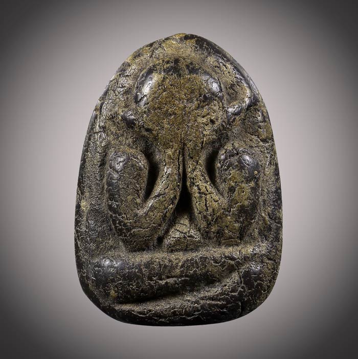 (วัดใจ)พระปิดตา เนื้อผงคลุกรัก (ไม่ทราบที่) สภาพเก่ามีอายุ ขนาดฐาน 2cm สูง 2.8cm |