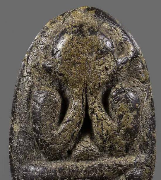 พระปิดตา เนื้อผงคลุกรัก (ไม่ทราบที่) สภาพเก่ามีอายุ ขนาดฐาน 2cm สูง 2.8cm |