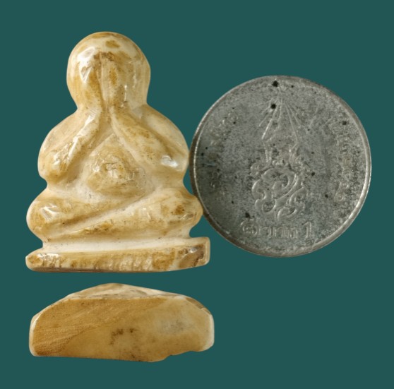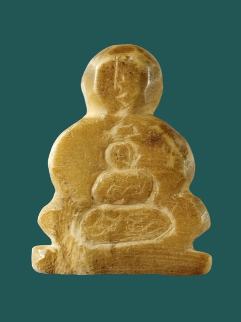 ปิดตาแกะ(ไม่ทราบเป็นงาหรือเขาหรือกระดูก) หลังมีจาร เก่าเก็บมีอายุ |