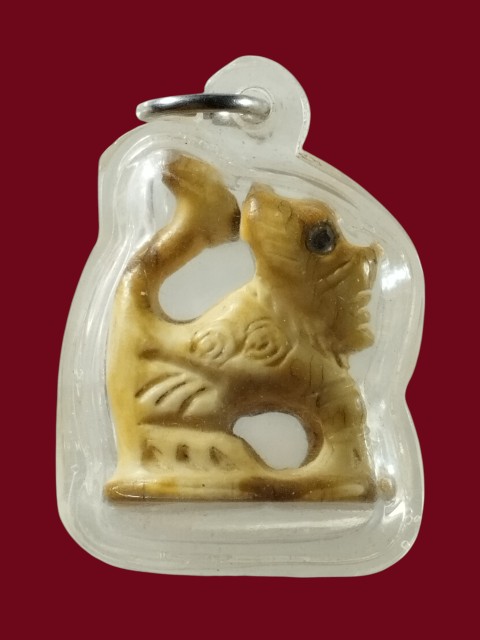 สิงห์แกะศิลป์โบราณ ตาฝังพลอย เก่าเข้าเลี่ยมกันน้ำไว้แล้ว ใต้ฐานมีจาร(ไม่ทราบเป็นงาหรือเขาหรือกระดูก)