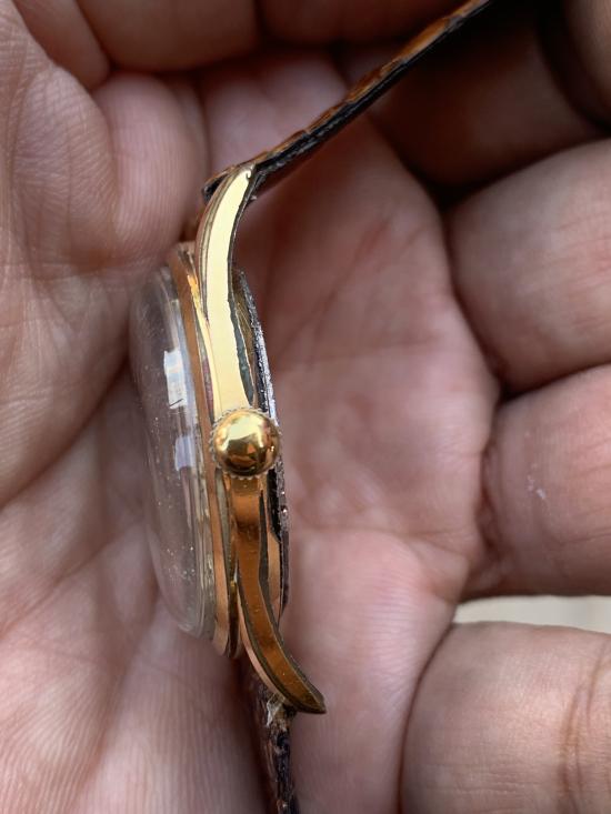 สวยตามรูป สภาพสวยตามกาลเวลา แท้วินเทจ ยุคกลางศตวรรษที่20 เรือนเข็มดาบทอง หลักธนูเลขอารบิก วันที่เดินปกติ สโนลอยมีรอยร้าวนิดๆ ไม่ผลต่อการใส่ ดูไห้ชอบแล้วค่อยเคาะจะได้ไม่เสียเวลากันครับ รับประกันตามกฏ