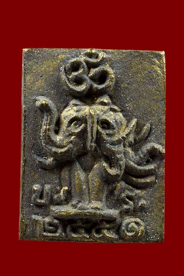 วัดใจเคาะเดียวแดง เหรียญหล่อเทพฮินดู หลังช้างสามเศียร อุดผงใต้ฐาน |