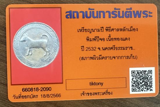 เหรียญ นามปี ปีจอ พีธีศาลหลักเมืองเนื้อทองแดง ปี2532 นครศรีธรรมราช