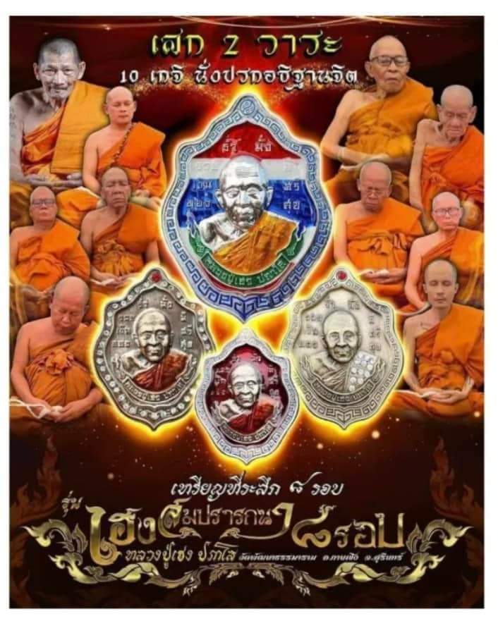 แบ่vปัu เหรียญที่ระลึก ๘ รอบ รุ่น เฮงสมปราถนา๘รอบ หลวงปู่เฮง ปภาโส จ.สุรินทร์ รายการลุ้นเนื้อ ซีนเดิมๆชุด 5 องค์ แท้ทันประกันให้ หลวงปู่มหาศิลา เมตตาร่วมปลุกเสก |