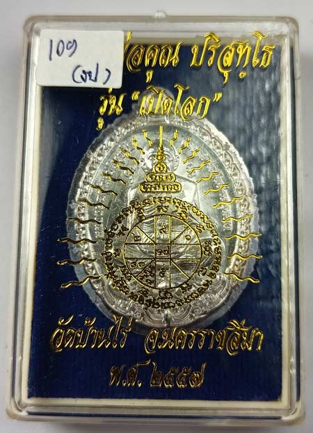 เหรียญ รุ่น เปิดโลก หลวงพ่อคูณ วัดบ้านไร่ เนื้อเงิน ไม่ตัดปีก9รอบ เบอร์ 109 พร้อมกล่องครับ (น้ำหนักเหรียญ 15.40 กรัม)