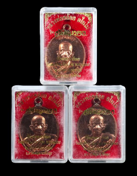 3องค์ เหรียญห่วงเชื่อมเจริญพร รุ่นแรก หลวงพ่อคล้อย วัดภูเขาทอง เนื้อทองสัตตองค์ทองชมภู รุ่นสัตตมงคล |