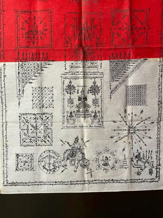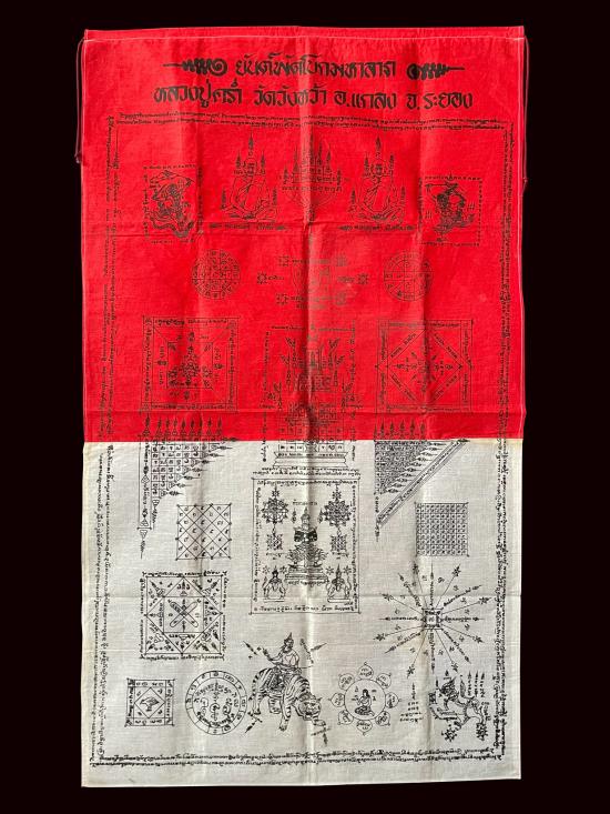 ผ้ายันต์พัดโบก มหาลาภ หลวงปู่คร่ำ วัดวังหว้า ระยอง ปี 2537 ผืนใหญ่ มีเชือกร้อยมากับผ้ายันต์พร้อมแขวนบูชา ผ้าด้ายดิบแข็งๆ เส้นยันต์คมชัด รับประกันตามกฎทุกประการ |