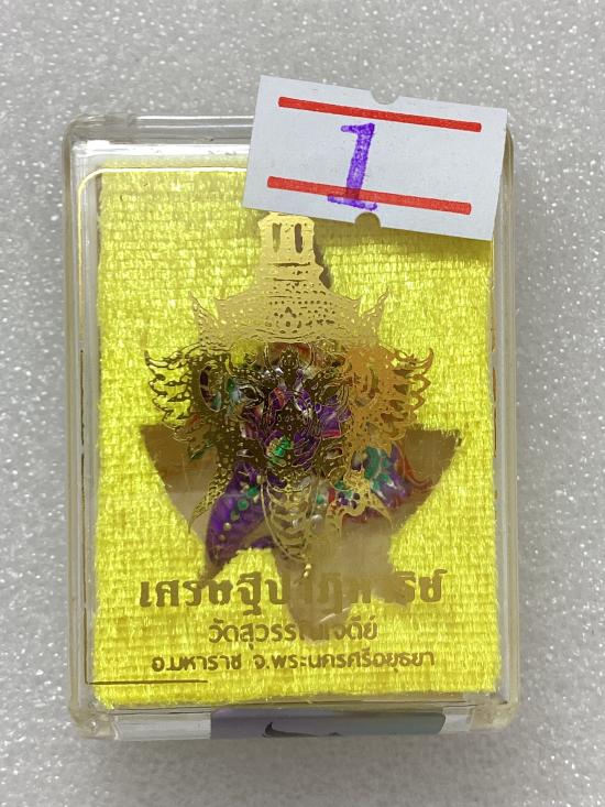 เหรียญหล่อเศียร พระพิฆเนศวร์ เศรษฐีปาฏิหารย์ วัดสุวรรณเจดีย์ จ.พระนครศรีอยุธยา เนื้อทองสัตตะ ชุบ 2K ลงยาราชวดี ( หน้าม่วง) กล่องเดิม |