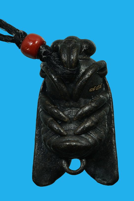 พญาแมลงภู่คำ ลักษณะ เนื้อชนวนรมดำ เพศ ตัวเมีย ขาทะลุ ผู้สร้าง/ปลุกเสก สล่าปะอ่อง จองคำ แหล่งที่มา แม่ฮ่องสอน ปีที่จัดสร้าง พ.ศ. ๒๕๖๒ (ปี 2562) |