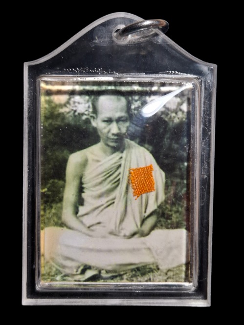 รูปภาพหลวงพ่อเกษม เขมโก หลังปั้มหมึก ติดจีวร ปี2518 ขนาด 1 นิ้ว เลี่ยมพร้อมใช้ #3 |