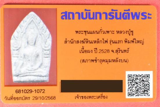 ขุนแผนกั่วเผาะ รุ่นแรก หลวงพ่อชู สำนักสงฆ์หินเหล็กไฟ จ. สุรินทร์ พิมพ์ใหญ่ 2528 พร้อมบัตร G