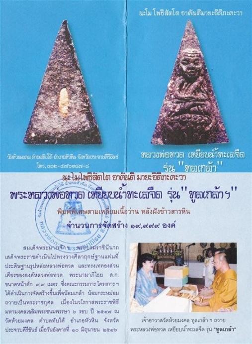 หลวงปู่ทวด วัดห้วยมงคล ปี46 เนื้อว่าน หลังฝังข้าวสารหิน *มวลสารดี พิธีใหญ่* (ที่ระลึกทรงวางศิลาฤกษ์ - เททอง สก.)
