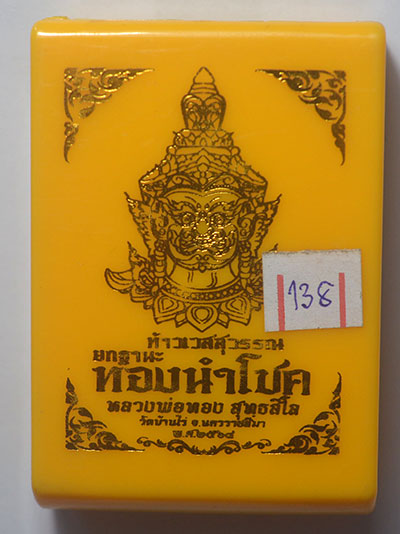 ทองนำโชค หลวงพ่อทอง วัดบ้านไร่ ท้าวเวสสุวรรณ ฝังตะกรุด 2 ดอก เลข 138