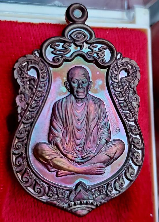 ( สวัสดีปีใหม่ ) เหรียญเสมาประทานพร ห่มคลุม (รุ่นแรก) เนื้อทองแดงนอกมันปู No.1945 สภาพสวย พร้อมกล่องเดิม น่าเก็บ |