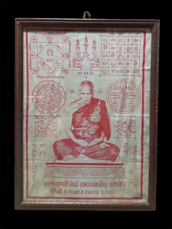 ผ้ายันต์รุ่นแรก หลวงพ่อเมี้ยน วัดโพธิ์กบเจา ใส่กรอบเก่า |