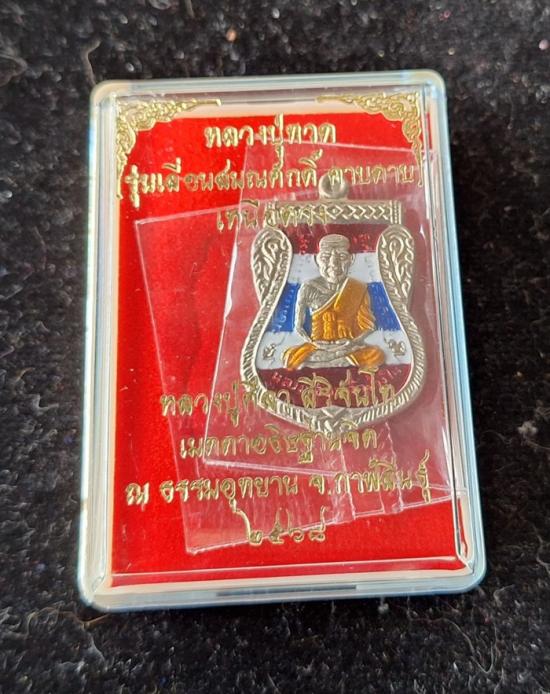 วัดใจ หลวงปู่ทวด หลวงปู่ศิลา เมตตาอธิษฐานจิต รุ่นเลื่อนสมณศักดิ์ เหนือดวง เนื้ออัลปาก้า ลงยาลายธงชาติ No.262 |