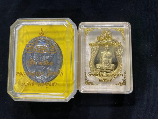 !!!เคาะเดียวได้ 2 รายการ!!! เหรียญหลวงพ่อรวย กฐินปี 2563 ทองแดงรมดำ หมายเลข 7147และ เหรียญปี 2564 เนื้อฝาบาตร หมายเลข 259167 พร้อมกล่อง |