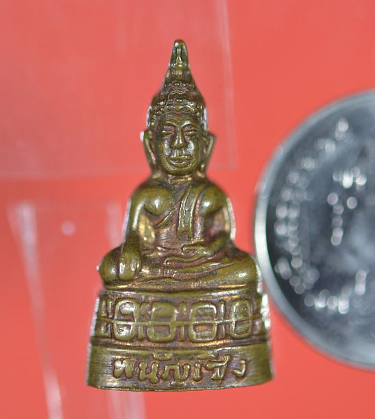 พระกริ่งหลวงพ่อโต วัดพนัญเชิง พิมพ์ตัวหนังสือนูน ก้นกลึง เนื้อทองเหลือง ปี 2500 จ.พระนครศรีอยุธยา เคาะเดียวแดง |