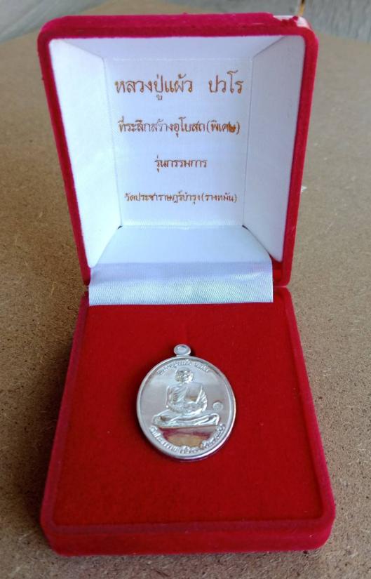 เนื้อเงิน (เหรียญกรรมการ 1)ที่ระลึกสร้างอุโบสถ หลวงปู่แผ้ว ปวโร วัดรางหมัน จ นครปฐม ปี2554 พร้อมกล่อง ตามรูป