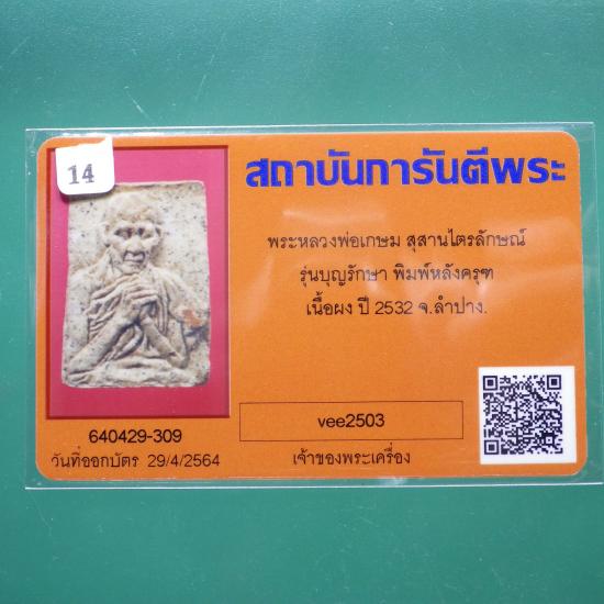 หลวงพ่อเกษม หลังครุฑ รุ่นบุญรักษา ปี 2532...14....68.4.11 |