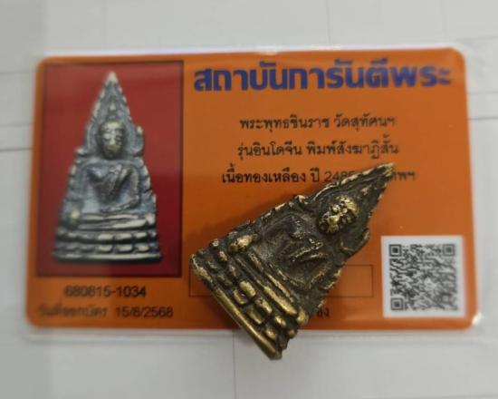 เคาะเดียว พระพุทธชินราช วัดสุทัศนฯ รุ่น อินโดจีนปี สังฆาฏิสั้น เนื้อทองเหลือง ปี 2485 ไม่ตอกโค๊ด พร้อมบัตรรับรอง G-Pra รับประกันตามกฏ |