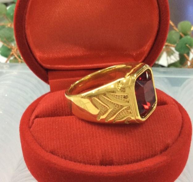 **ปีใหม่-เทขาดทุน**แหวนทองเกลี้ยงมหามงคลเสริมบารมี หัวพลอยแดงโกเมนสวยมาก สวยๆ |