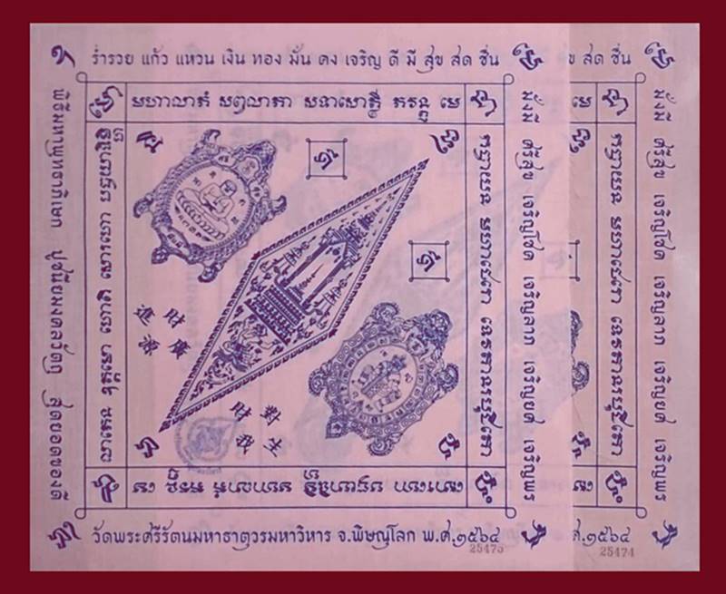 ผ้ายันต์ พญาเต่ามังกร เวสสุวรรณ - พญาเต่าเรือน พระสังกัจจายน์มหาลาภ สีชมพู ขนาด 30CM x 30 CM ปี 2564 วัดพระศรีรัตนมหาธาตุวรมหาวิหาร จัดสร้างเอง