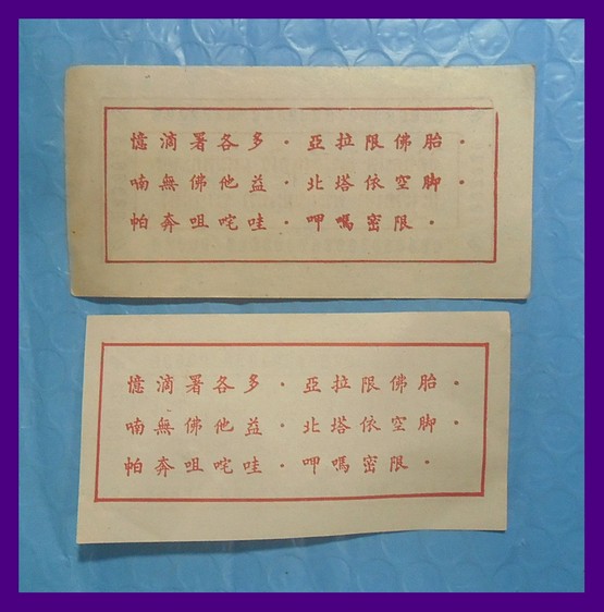 เก่าถึงยุค-นิยม หลังภาษาจีน 2แผ่น-150-กระดาษยันต์กันภัย หลวงพ่อโอภาสี ด้านหลังภาษาจีน |