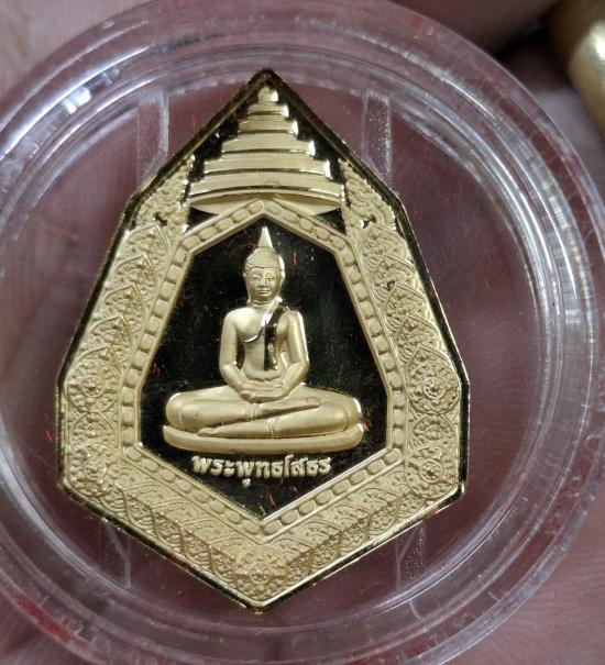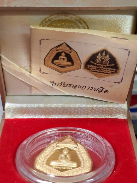 เหรียญหลวงพ่อพระพุทธโสธร ฉัตรแปดเหลี่ยม รุ่น สร้างพระอุโบสถ เนื้อทองแดงนอก ขัดเงาพ่นทรายเคลือบทอง ตอกโค้ดและหมายเลข |