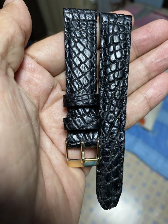หนังจระเข้แท้ใหม่มทอ1 แฮนเมจ บัคเคิลสีทอง 20มิล รับประกันตามกฏ พื้นที่ห่างไกลบวกค่าส่ง20ครับ |