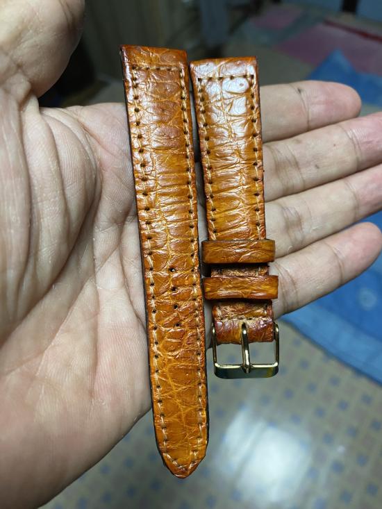 หนังจระเข้แท้ใหม่มือ1 แฮนเมจ บัคเคิลสีทอง20มิล รับประกันตามกฏ พื้นที่ห่างไกลบวกค่าส่ง20 |