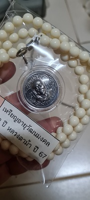 เหรียญอายุวัฒนมงคล 80 ปี เนื้อตะกั่ว(มีค่าดั่งทองคำ)หลวงตาม้า วัดถ้ำเมืองนะ พร้อมรอยจารหลวงตาม้า เลี่ยมจากวัดพร้อมประคำ