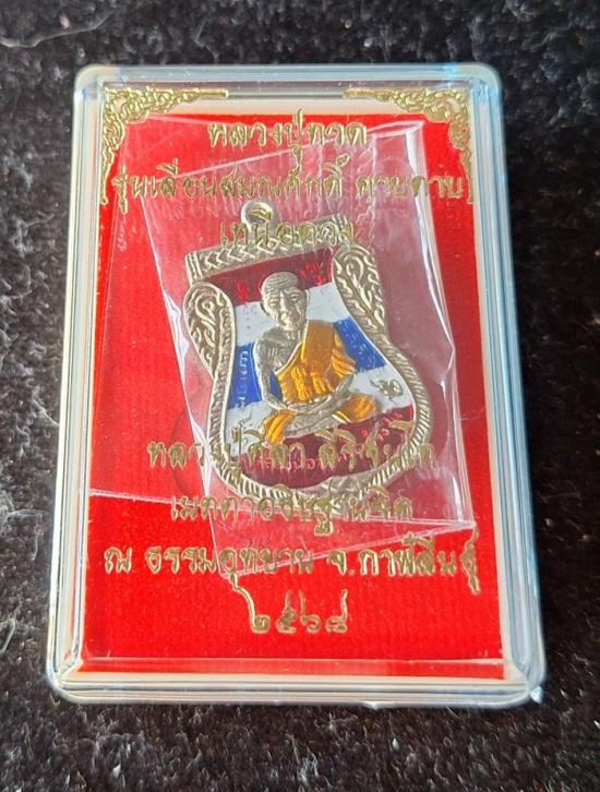 ชื่อพระเครื่อง วัดใจ หลวงปู่ทวด หลวงปู่ศิลา เมตตาอธิษฐานจิต รุ่นเลื่อนสมณศักดิ์ เหนือดวง เนื้ออัลปาก้า ลงยาลายธงชาติ No.427