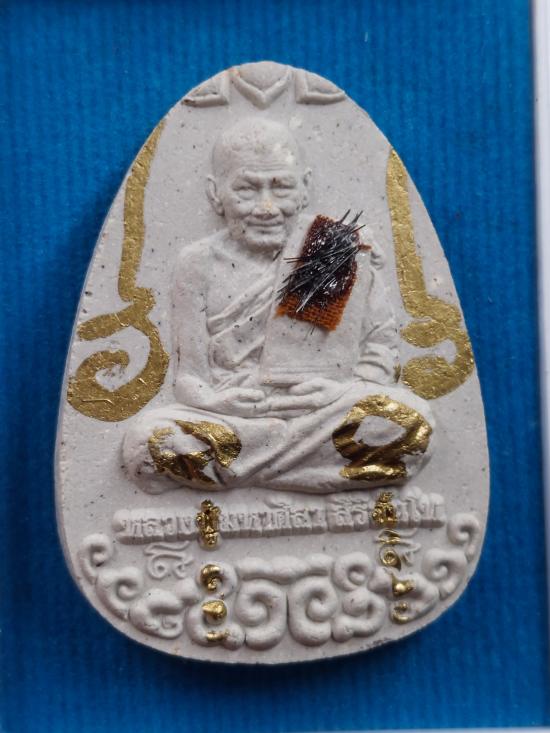 พระผงนั่งเมฆเลื่อนยศ หลวงปู่มหาศิลา ศิริจันโท เนื้อขาวผงพุทธคุณจารย์หมึกทอง