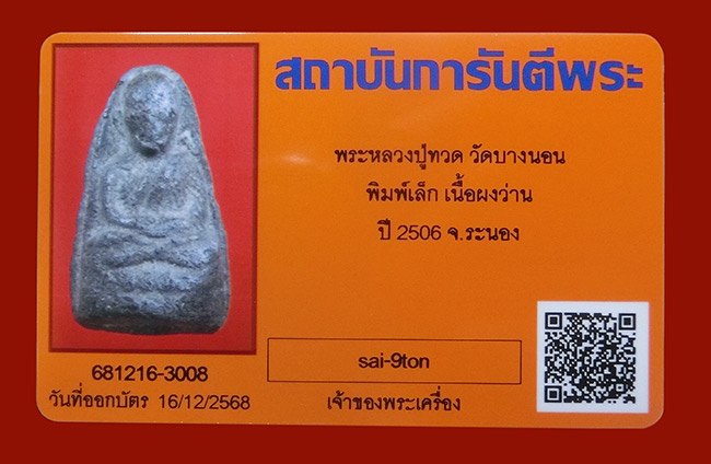 เนื้อว่าน วัดบางนอน หลังเรียบ ..............................1000