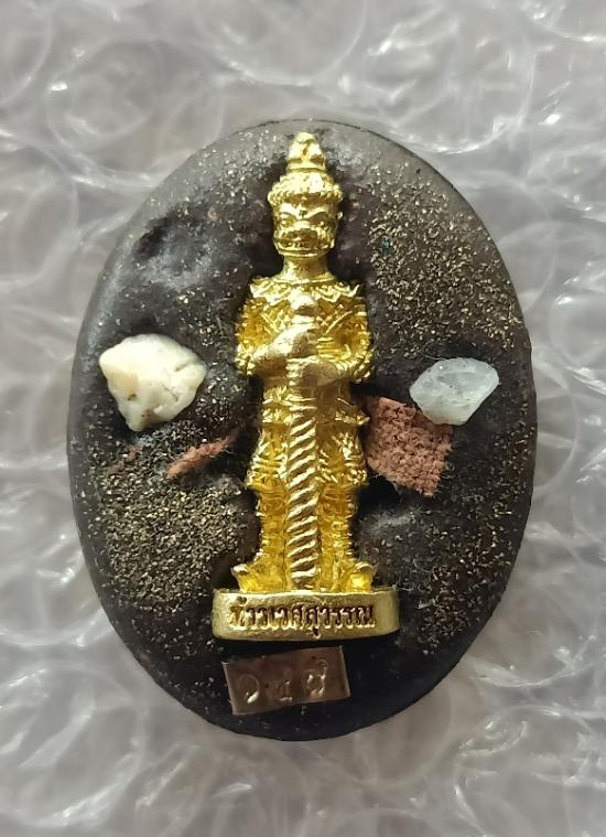 ล็อกเก็ตฉากทอง ด้านหลังฝังท้าวเวสสุวรรณ พลอยเสก จีวร ข้าวสารหิน หลวงปู่แสง ญาณวโร วัดป่าดงสว่างธรรม ยโสธร รุ่นศรัทธาธรรม |