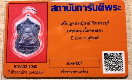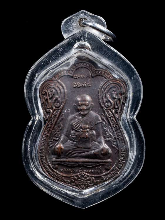 เหรียญหลวงปู่หงษ์วัดเพชรบุรีรุ่นขุดสระเนื้อทองแดงรมดำปี 2541 จังหวัดสุรินทร์