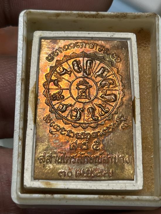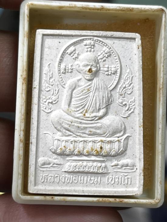 พระผงรูปเหมือนนั่งพาน หลังแผ่นทองแดงปีเกิด12ราศี ปี37 พร้อมกล่อง หลวงพ่อเกษมเขมโก