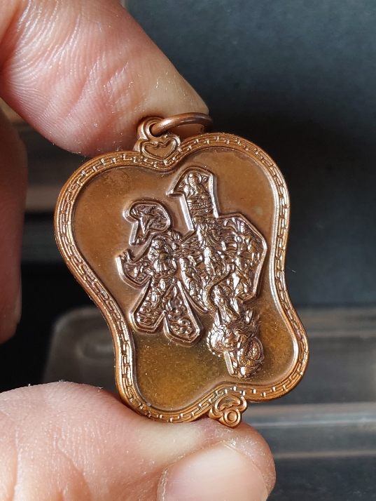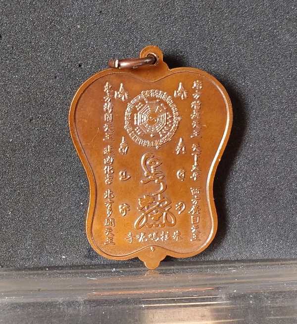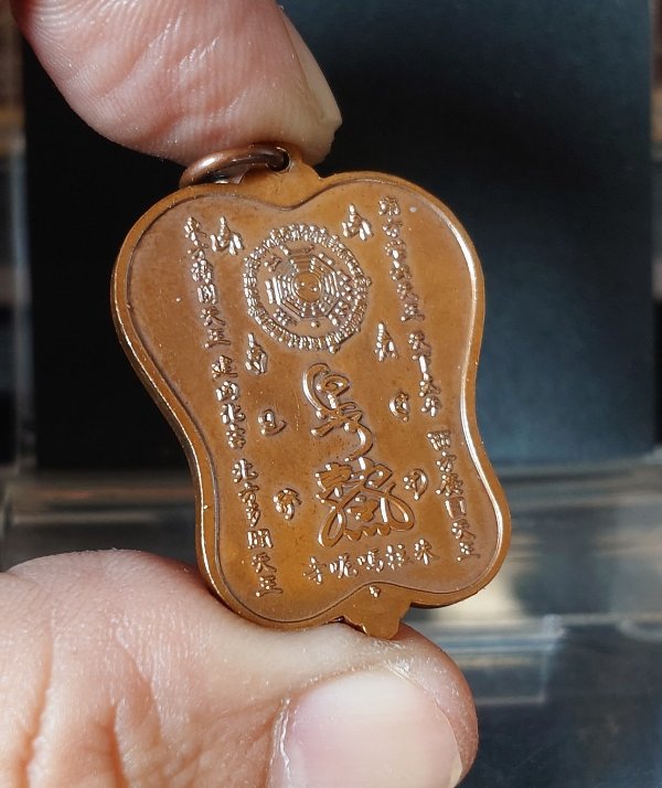 เหรียญเป็นรูปพัดจีน ช่วยพัดพาสิ่งไม่ดี ออกไป แก้ดวงตก แก้ปีชง บล็อกด้านหน้าเหรียญเป็นแปดเซียน และ มังกร ด้านหลังเป็นยันต์8ทิศ จารึกถ้อยคำมงคลภาษาจีน