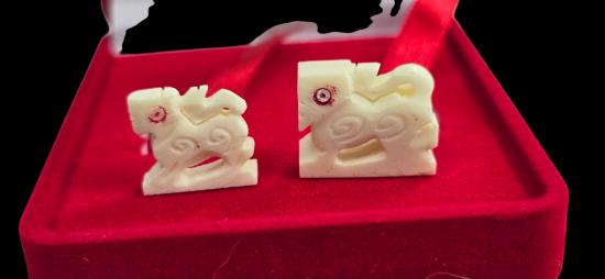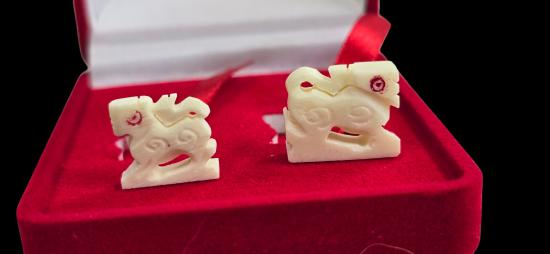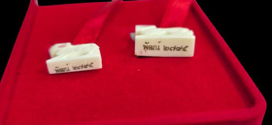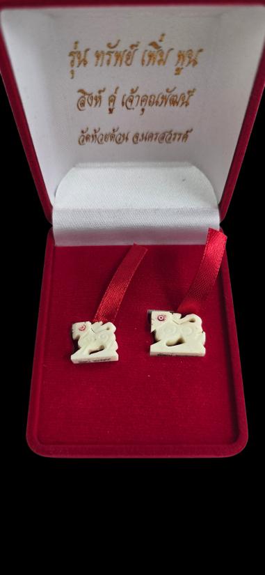 สิงห์คู่ งาแกะ หลวงพ่อพัฒน์ วัดห้วยด้วน รุ่นทรัพย์เพิ่มพูน พร้อมกล่องกำมะยี นับเบอร์