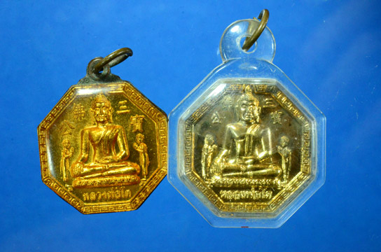 100 ส่งด่วน*เหรียญแปดเหลี่ยม หลวงพ่อโต วัดพนัญเชิง เนื้อกะไหล่ทอง หลังเทพจีน จ.อยุธยา สวยครับ2 เหรียญ |