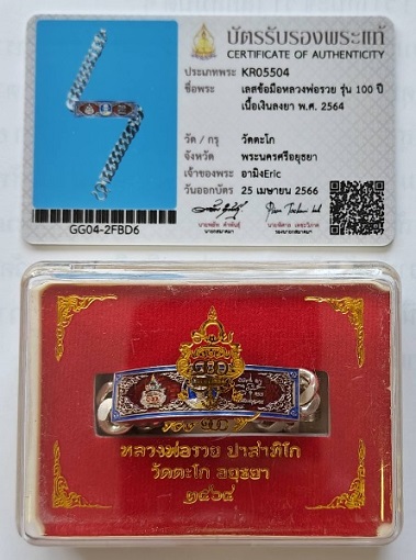 เลสข้อมือหลวงพ่อรวย เนื้อเงินลงยา ขนาด 2 บาท รุ่น 100 ปี พ.ศ. 2564 ไม่เคยผ่านการใช้งาน พร้อมบัตรรับรองพระแท้