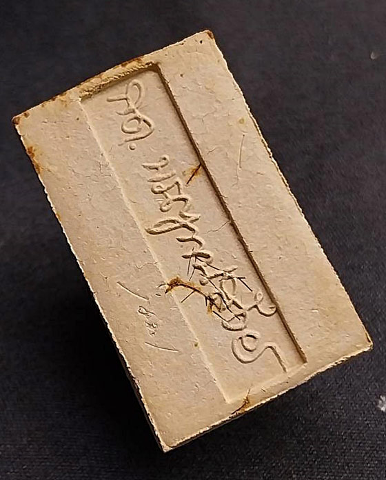 ด้านหลังองค์พระมีชื่อของเจ้าประคุณสมเด็จพระญาณสังวรและเส้นเกศาของท่านบรรจุอยู่