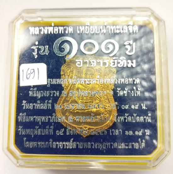 เหรียญเสมาหน้าเลื่อน หลวงพ่อทวด 101ปี อ.ทิม เนื้อทองดอกบวก เบอร์ 1691 พร้อมกล่องเดิมครับ