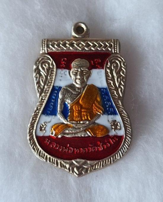 วัดใจ หลวงปู่ทวด หลวงปู่ศิลา เมตตาอธิษฐานจิต รุ่นเลื่อนสมณศักดิ์ เหนือดวง เนื้ออัลปาก้า ลงยาลายธงชาติ No.973 |