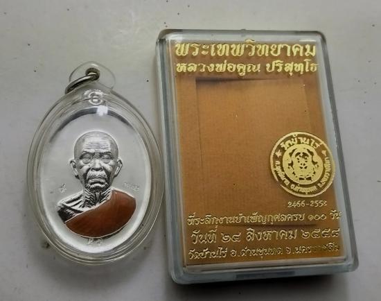 เหรียญหลวงพ่อคูณ ที่ระลึกงานบำเพ็ญกุศลครบ ๑๐๐ วัน พิมพ์ใหญ่ เนื้อเงินลงยจีวร หลัยันต์ เลข57พร้อมเลี่ยมกล่องเดิม |