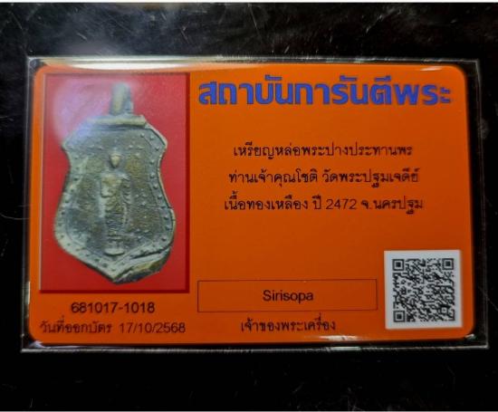เคาะเดียวแดง เหรียญหล่อพระปางประทานพร ท่านเจ้าคุณโชติ วัดพระปฐมเจดีย์เนื้อทองเหลืองปี2472 จ.นครปฐม